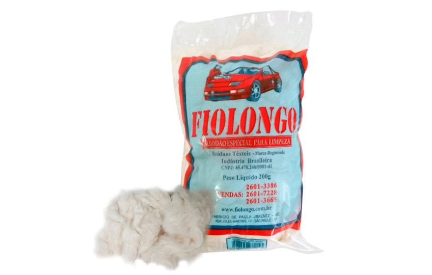 Algodão comum de fibras longas, absorventes e macias. Ideal para serviços em marcenaria e polimento de automóveis.